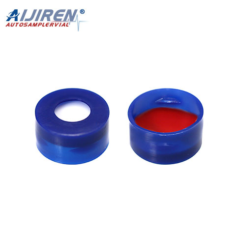 Pre-slit White PTFE/Red Silicone Septa, 11mm Blue Snap-top Polyethylene Cap, 6mm Centre Hole |