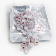 | Description | White PTFE/Red Silicone Septa, 11mm Natural Snap-top Polyethylene Cap, 6mm Centre Hole |