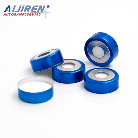 White PTFE/White Silicone Septa, 20mm Crimp-top Blue Magnetic Aluminum Cap, 10mm Centre Hole |
